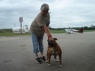Thankfully, it worked out just fine. Sassy is a very well-mannered, lovable dog. Here she is with Jerry of Jerry's Rescues. Jerry said that a lot of people shied away from Sassy because they thought she had pit bull in her, but this is not the case. She may look a bit intimidating, but she has a marshmallow personality. So, Sassy gets a first-class ticket in N323RV to her new home in Oklahoma.